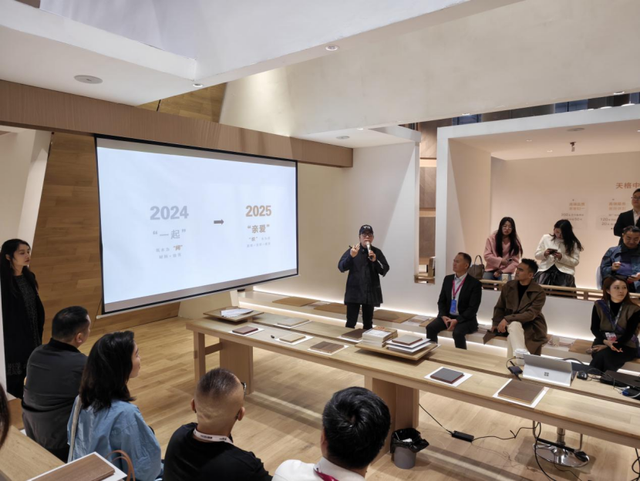 无论是展馆的设计还是联名新品的推出,都是对“形意织间”的生动解读:以“形”载“意”,用编织的技艺与意象,承载中国高端实木地板的美学表达和文化内涵。在发布会现场,谢英凯老师也向我们阐述了其作品背后的深层思考,并通过现场的交流环节,让大家直观了解到,文化赋能高端家居空间设计的全新思路。